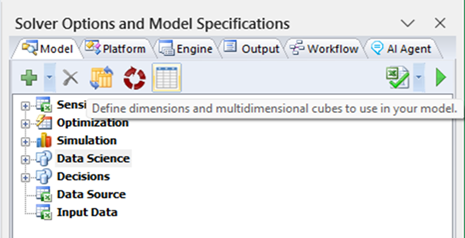 We've just released Analytic Solver V2025 Q4, with new versions of Analytic Solver Desktop and Cloud (for Excel users), Solver SDK (for developers), and our cloud platform RASON. In this release, we’ve focused on ease of use and better support for model creation. Most prominent is the new AI Agent tab in the Task Pane, which appears (in lieu of the Model tab) when you visit Analytic Solver on the Ribbon.