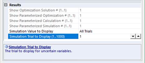 And we’ve removed the Tools tab from the Task Pane: The controls allowing you to select (and display on the worksheet) specific Simulation Trials, or specific runs from multiple parameterized Simulations or Optimizations, are now – more conveniently – available at the bottom of the Output tab: