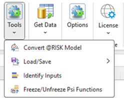 Fit Data (formerly available via the Tools icon, now here) replaces another popular feature, Convert @RISK Model. This option (which you’ll need only once, if at all) is now available via the Tools icon.