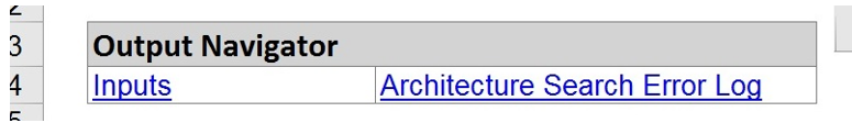 Scroll down to the Error Report, a portion is shown below. This report displays each network created by the Automatic Architecture algorithm and can be sorted by each column by clicking the down arrow next to each column heading.