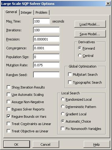The Large-Scale SQP Solver's integrated hybrid Evolutionary Solver finds good solutions to problems involving arbitrary Excel functions, even user-written functions. And where a "classical" nonlinear Solver would find only a locally optimal solution, this hybrid Solver will often find globally optimal -- or near-optimal solution.