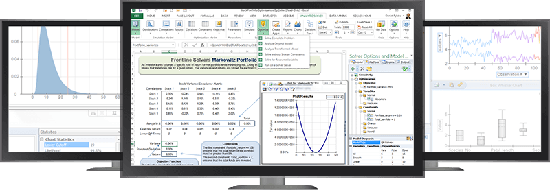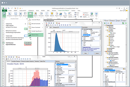 Analytic Solver Simulation gives you easy to use, powerful Monte Carlo simulation and risk analysis, decision trees, and simulation optimization using Frontline’s advanced Evolutionary Solver. With 60 probability distributions plus compound distributions, automatic distribution fitting, rank-order and copula-based correlation, 80 statistics, risk measures and Six Sigma functions, multiple parameterized simulations and more, it’s loaded with power - and it’s much faster than other tools for Excel!