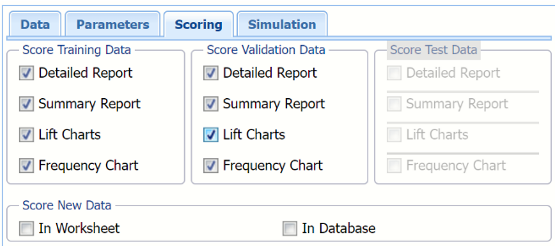 See Scoring New Data for more information on Score New Data in options.