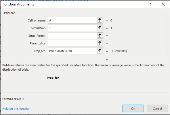 =PsiMean(A1,,,,PsiTruncate(0,50))   where A1 contains the PsiNormal(0,1) Psi distribution.