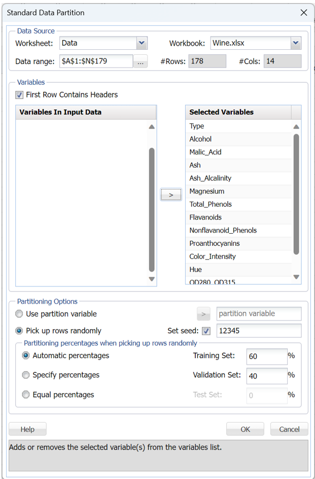 Click Partition – Standard Partition on the Data Science ribbon to open the Standard Data Partition dialog.
