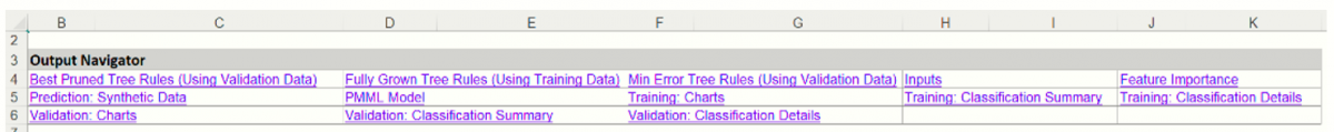 Output Navigator:  The Output Navigator appears at the top of all result worksheets.  Use this feature to quickly navigate to all reports included in the output.