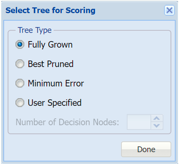 Select Fully Grown, Best Pruned, and Minimum Error.  Then click Done to close the dialog.