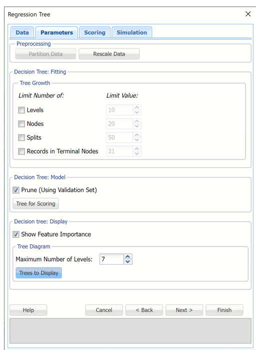 Click Next to advance to the Regression Tree – Parameters tab.