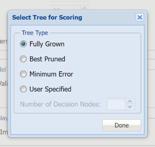 Select Prune (Using Validation Set).  (This option is enabled when a Validation Dataset exists.)  Analytic Solver Data Science will prune the tree using the validation set when this option is selected.  (Pruning the tree using the validation set reduces the error from over-fitting the tree to the training data.)
