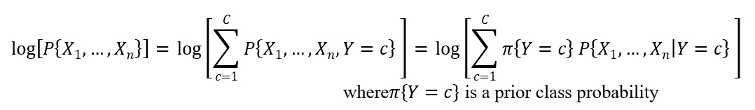 Select this option to print the Log-Density values for each partition in the output.  Log PDF, or Logarithm of Unconditional Probability Density, is the distribution of the predictors marginalized over the classes and is computed using: