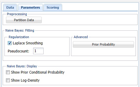 On the Data Science ribbon, select Classify - Naive Bayes to open the Naive Bayes - Step 1 of 3 dialog. Following are descriptions of the options available from the three Naive Bayes dialogs.